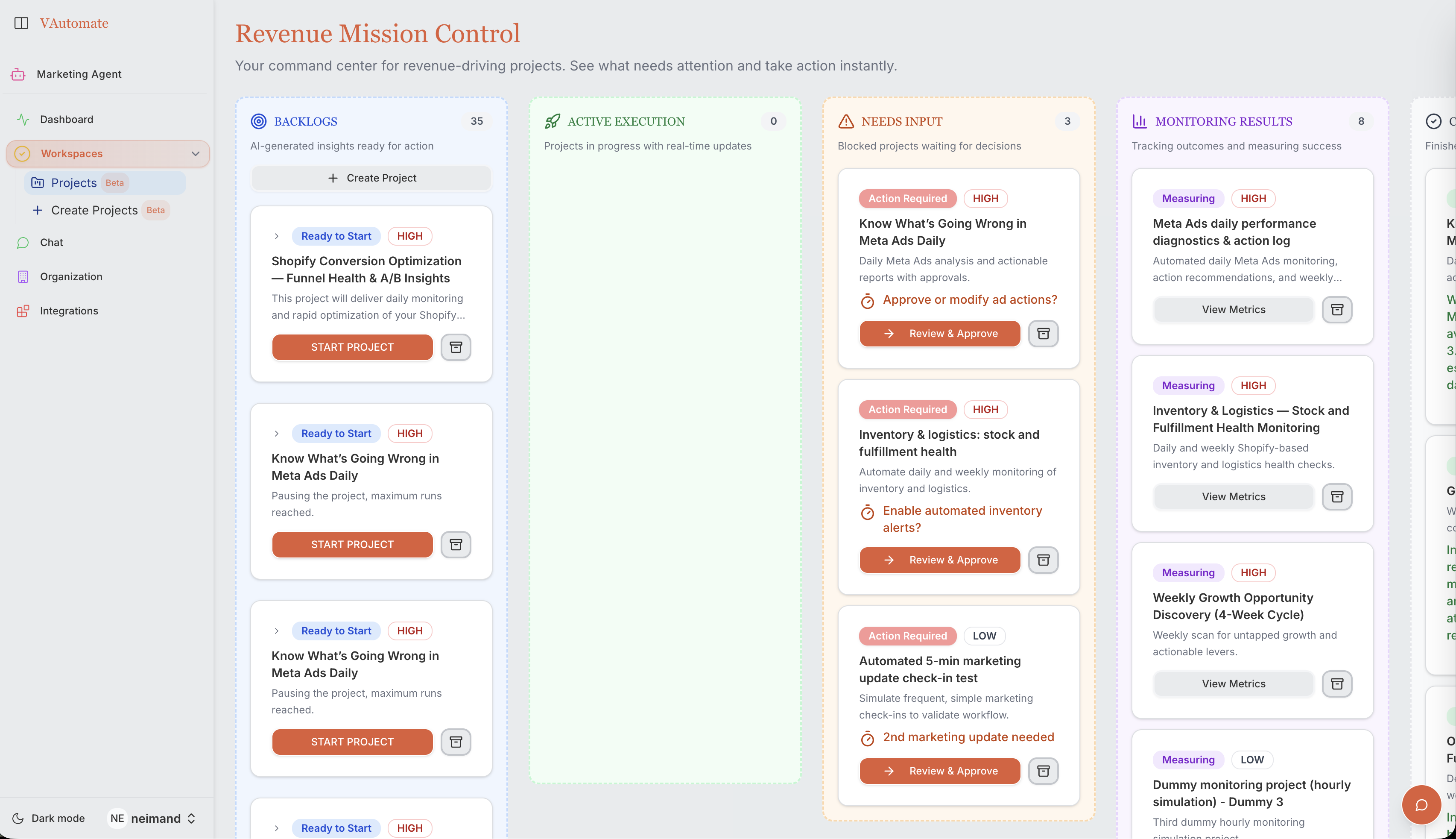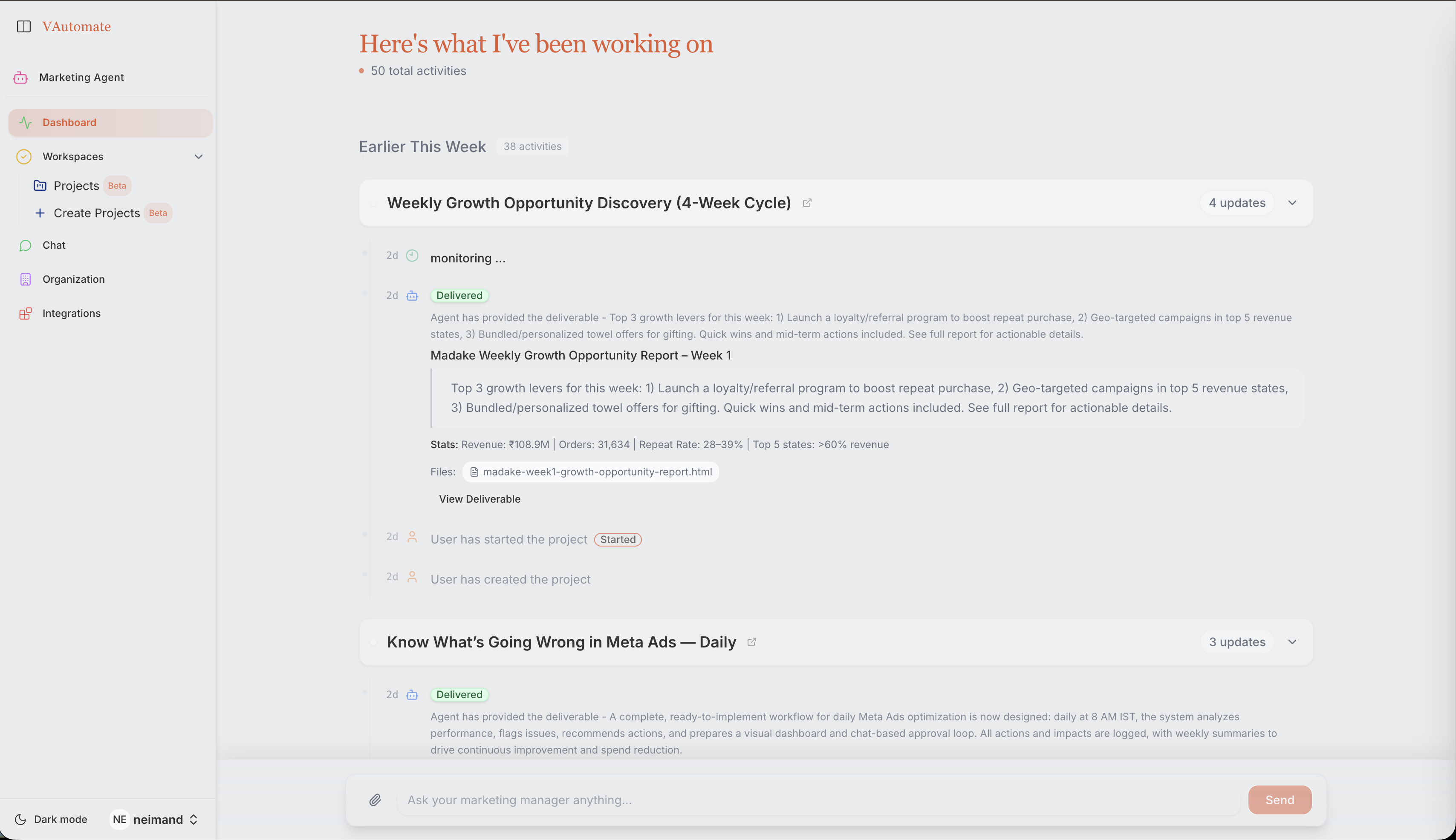 - Built their landing pages (vautomate.ai) and web dashboard (app.vautomate.ai)